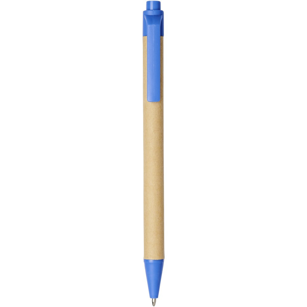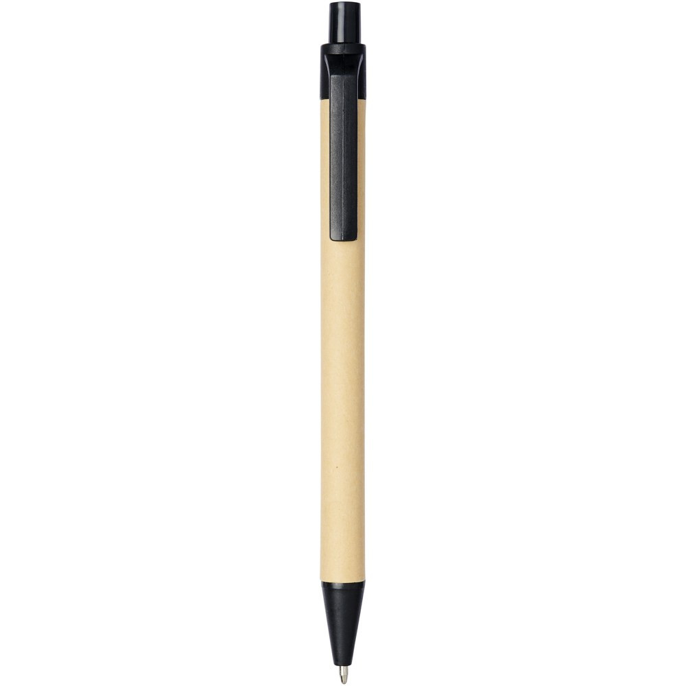 Penna a sfera ecologica con meccanismo a scatto, con serbatoio in materiale cartaceo biodegradabile e finiture in plastica derivata dal mais, disponibile in una varietà di colori. Il colore del cartone riciclato può variare.