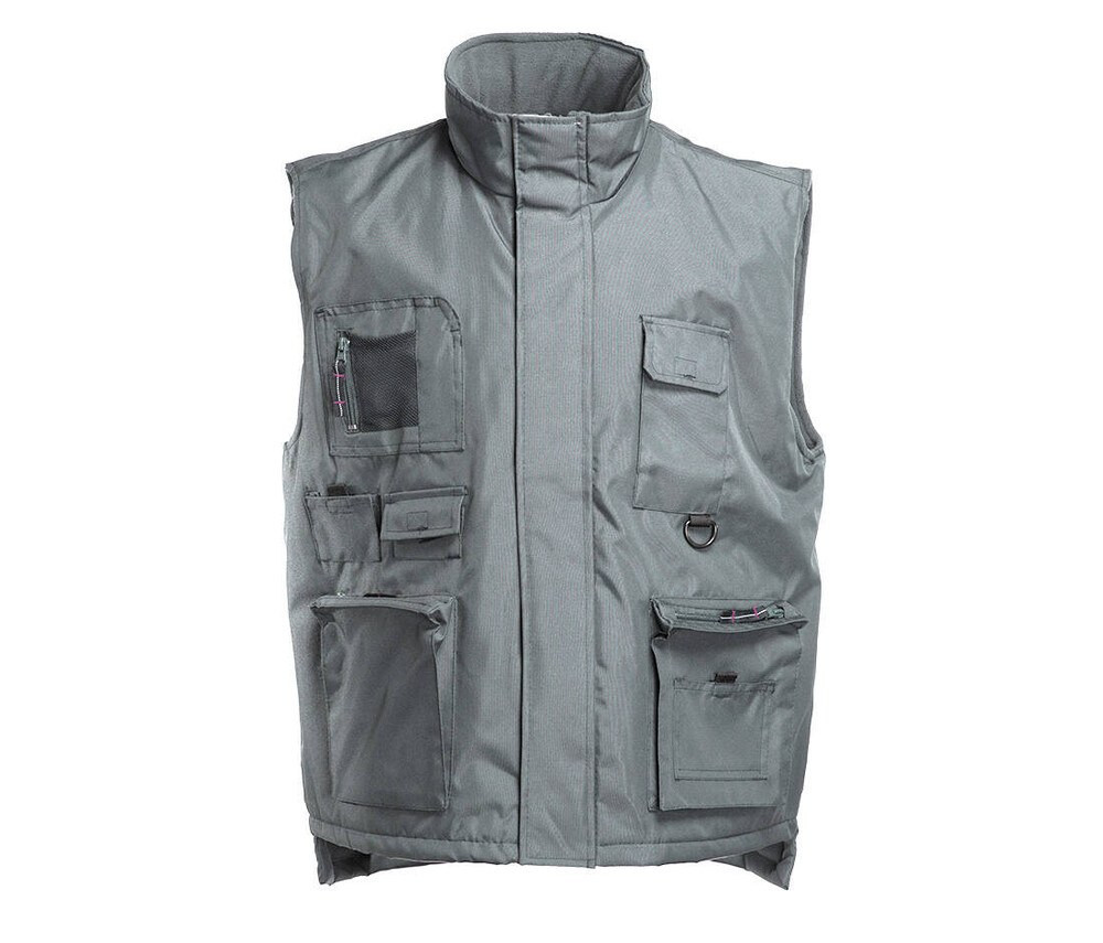 Bodywarmer multi-tasca con rivestimento impermeabile. Ideale indumento da lavoro con 10 tasche esterne: 2 tasche anteriori con zip con soffietti, 3 tasche con chiusura in velcro, 3 tasche sul petto, 1 penna tasca e 1 tasca smartphone. 1 tasca portafoglio interna. Zipper con patta. Fodera in pile. Longer back e regolazione taglie in Velcro®. Accesso per la personalizzazione.