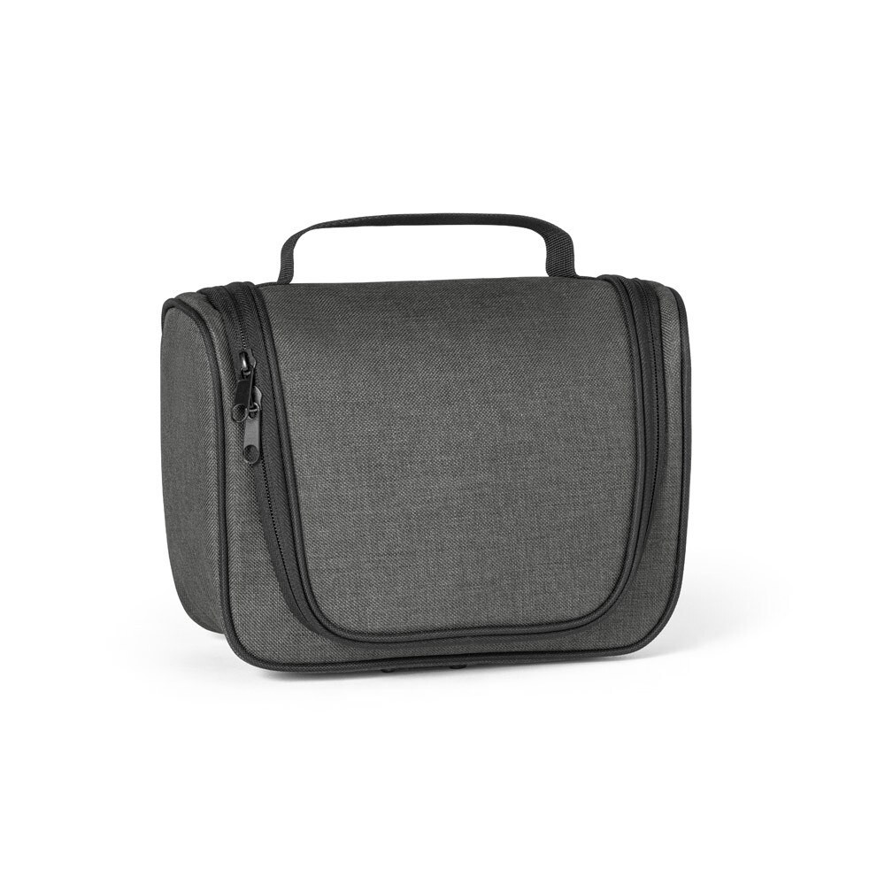 Beauty case in 600D ad alta densità. Lo scomparto principale ha una doppia cerniera, diverse tasche interne e rivestimento interno in 210D, nella parte superiore presenta un gancio, ideale per appendere il beautycase