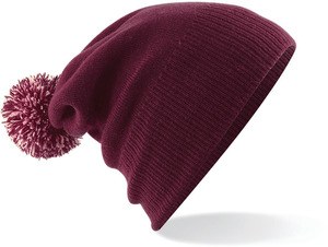 Beechfield B450 - Burgundy / Off White - Beanie Snowstar® con Pompom e Polsini Elasticizzati