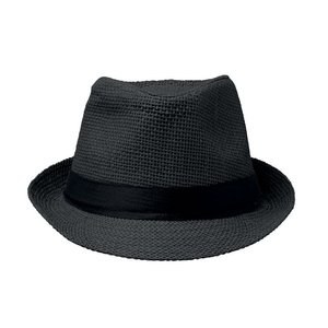 Cappello in paglia di carta con fascia nera in poliestere.