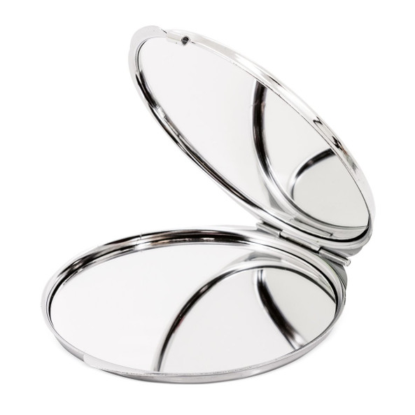 Specchietto rotondo, in ferro zincato, fornito con lamina metallica per la sublimazione.
