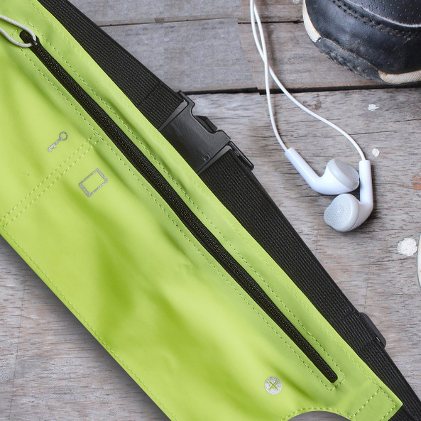 Marsupio da running con chiusura zip, dettagli riflettenti, passante per auricolari, chiusura con fibbia regolabile, elastica.