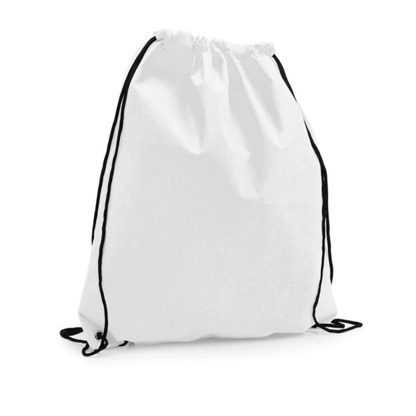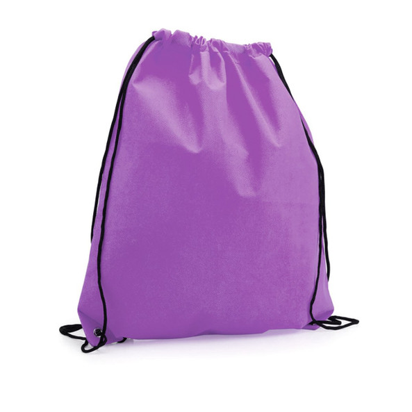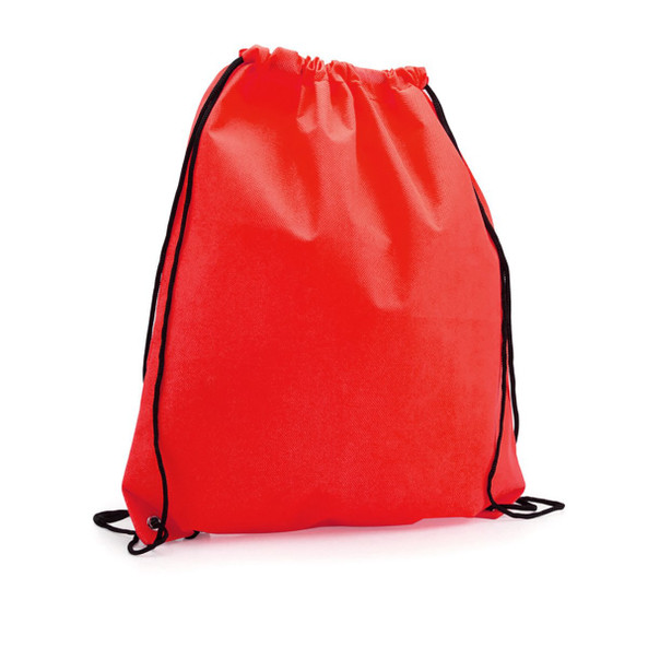 Sacca zaino in TNT, disponibile in vari colori. Con chiusura con coulisse nera e occhielli metallici di rinforzo sugli angoli.