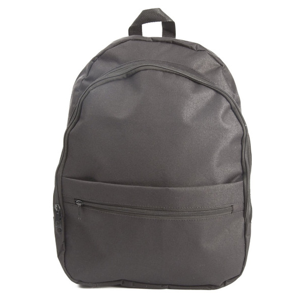 Zaino con due scomparti principali con chiusura zip. Una tasca frontale con zip e una aperta. Tasca laterale in rete. Spallacci regolabili.