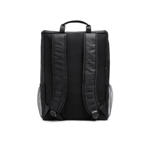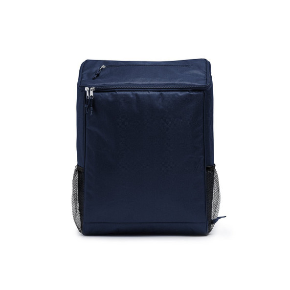 Zaino termico in RPET. Fodera isotermica nello scomparto principale. Tasca nella patella. Tasche laterali a rete. Capacità 19 litri. Schienale e spallacci imbottiti.
