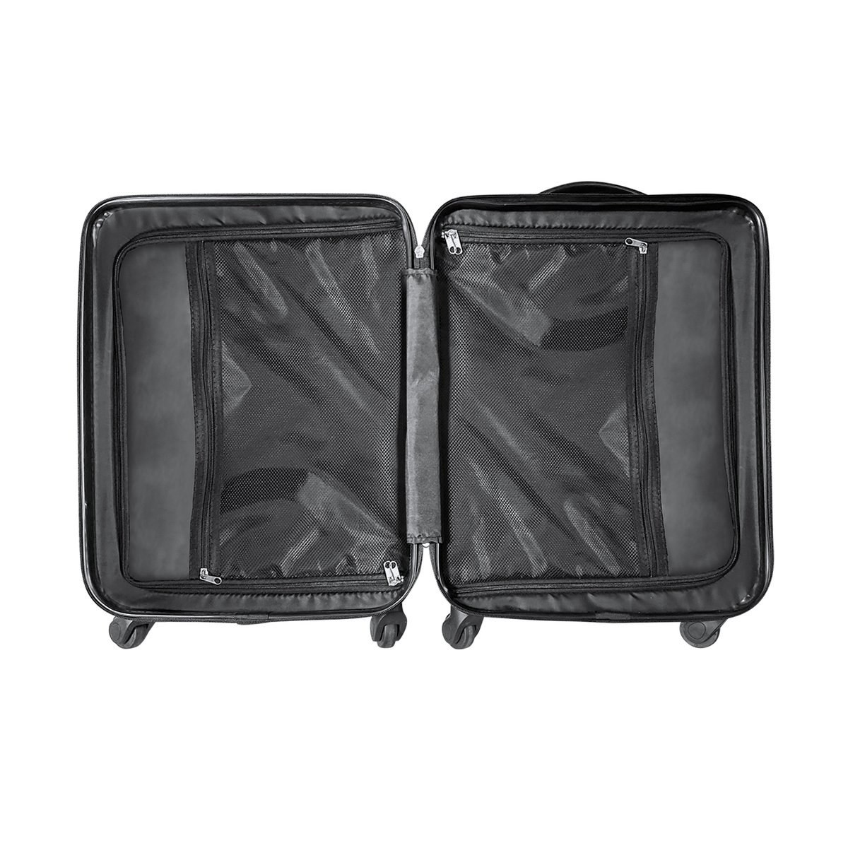 Trolley a quattro ruote con due scomparti interni con chiusura a zip. Personalizzabile frontalmente inserendo un inserto incapsulabile con 4 bottoni a pressione.