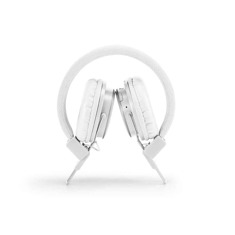 Cuffie in ABS pieghevoli e regolabili. Hanno una struttura imbottita, trasmissione BT e lettore di schede TF. Hanno un'autonomia fino a 4 ore e le seguenti funzioni: risposta alle chiamate, controllo del volume, connessione alla playlist del dispositivo mobile e alla radio FM. Includono un cavo USB per la ricarica. Forniti in confezione regalo