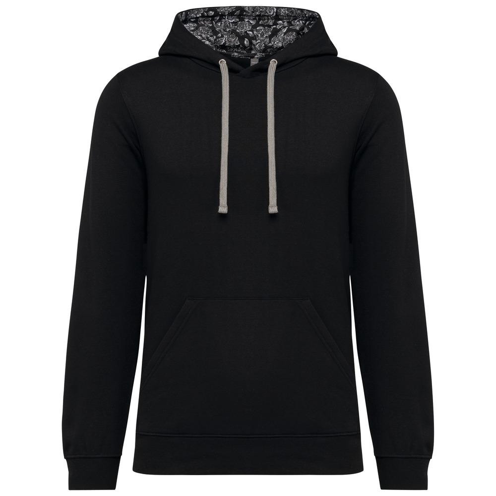 Cappuccio foderato con tessuto a tema in cotone jersey stampato e coulisse a contrasto.