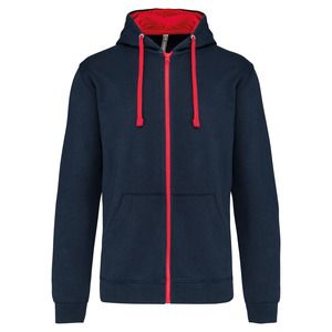 Kariban K466 - Navy / Red - Felpa con cappuccio a contrasto full zip