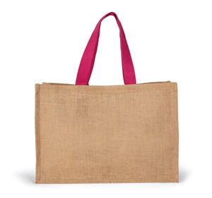 Kimood KI0743 - Natural / Fuchsia - Borsa Spesa XL in Juta con Manici Colorati