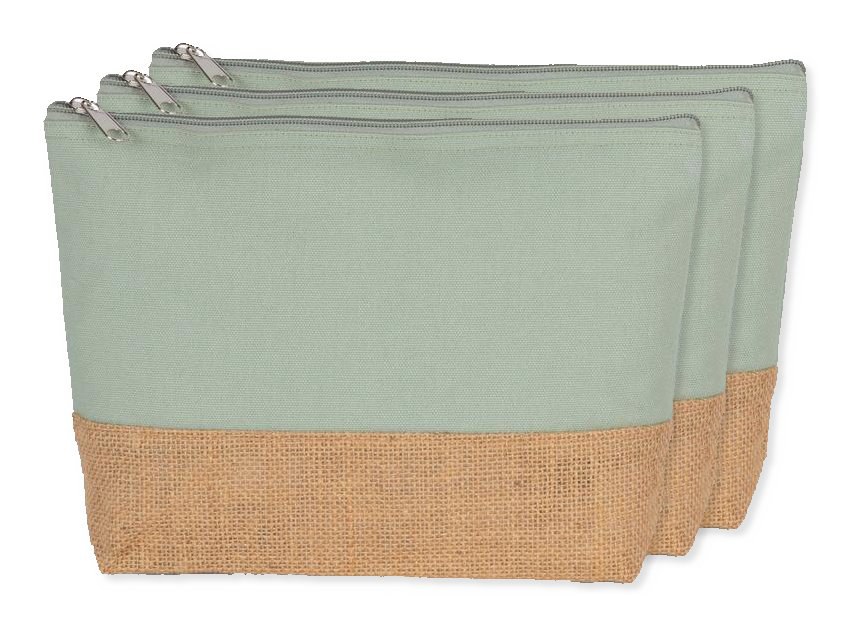 Pochette in tela di cotone con base a contrasto in iuta naturale laminata.