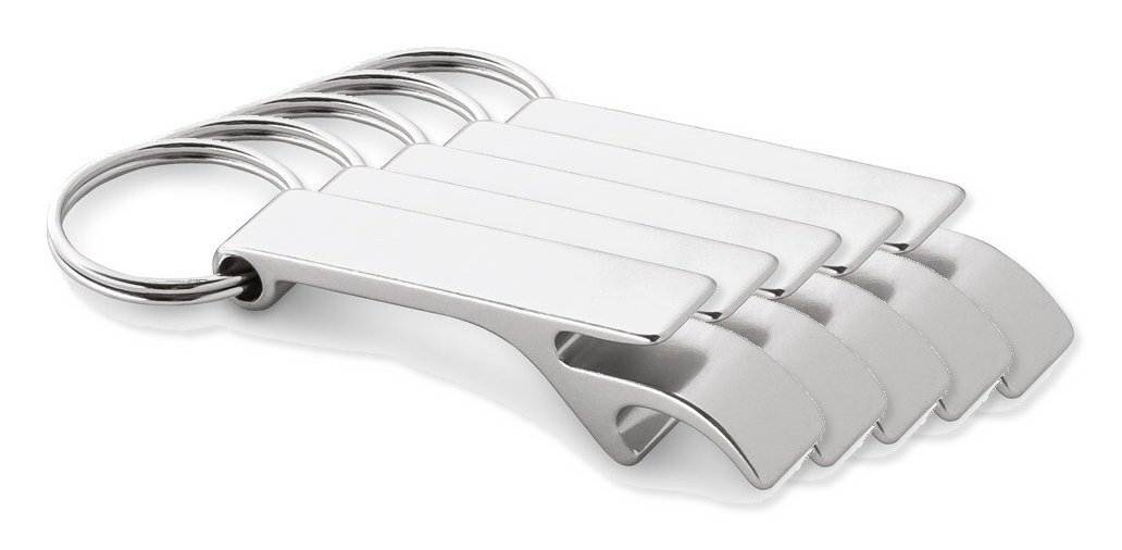 Pack da 5 Egotier 93151 - Argento - Portachiavi in alluminio con apribottiglia