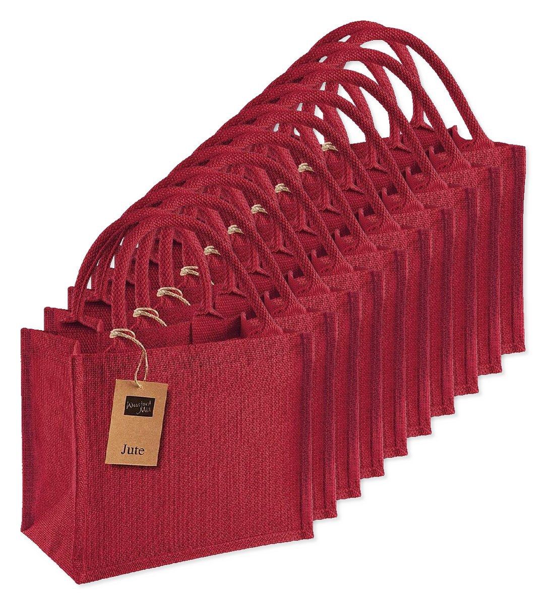 Pack da 75 Westford mill WM412 - Red / Red - Westford mill Borsa Regalo Mini in Juta con Manici in Cotone