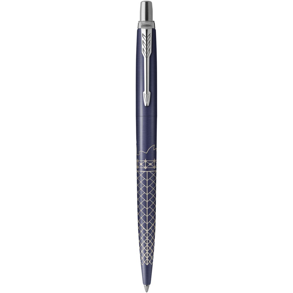 Penna a sfera con inchiostro blu fornita all'interno di una confezione regalo Parker Jotter SE Global Icons. La Parker Jotter SE Global Icons è una serie di penne di Parker, un famoso marchio con una lunga storia nella produzione di strumenti di scrittura di alta qualità. La sigla "SE" sta per "Special Edition (Edizione Speciale)", e il tema "Global Icons (Icone globali)" suggerisce un design che celebra gli elementi iconici di tutto il mondo. Capacità di scrittura: 2000 metri.