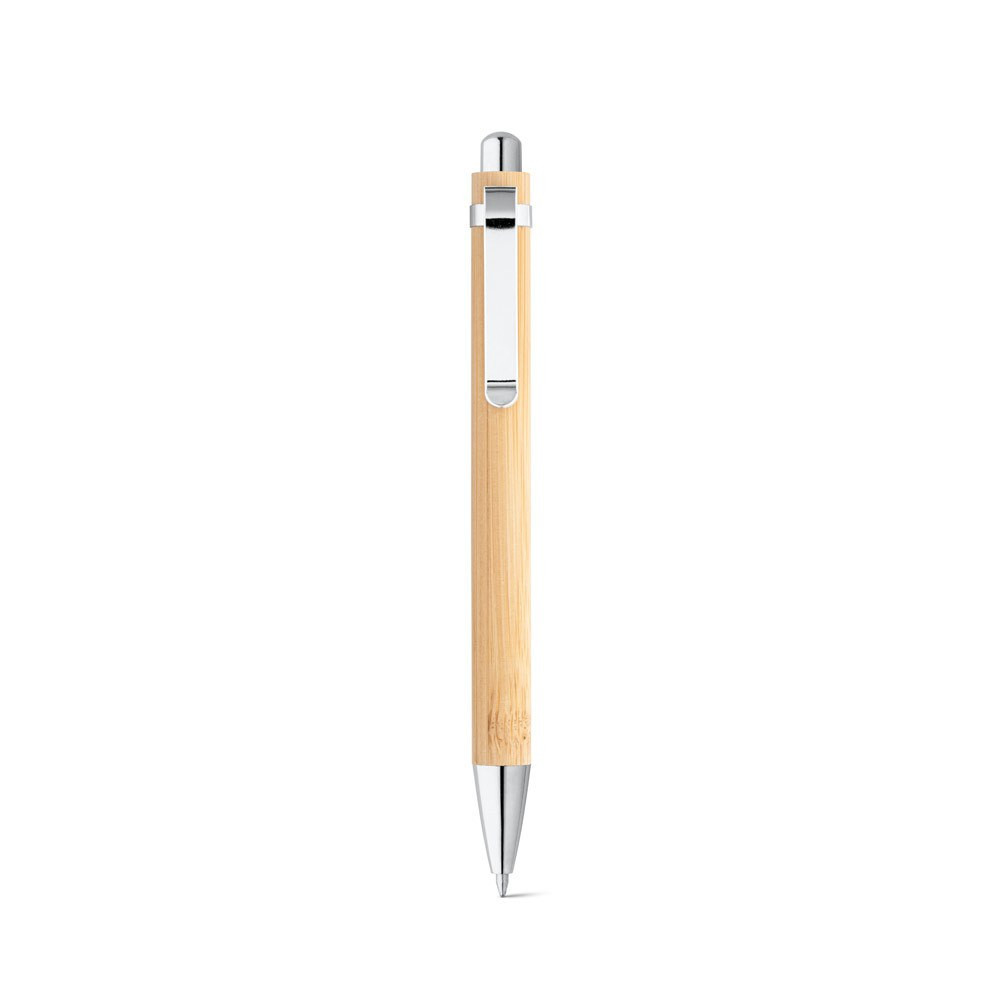 Penna a sfera in bambù con meccanismo a rotazione e clip in metallo