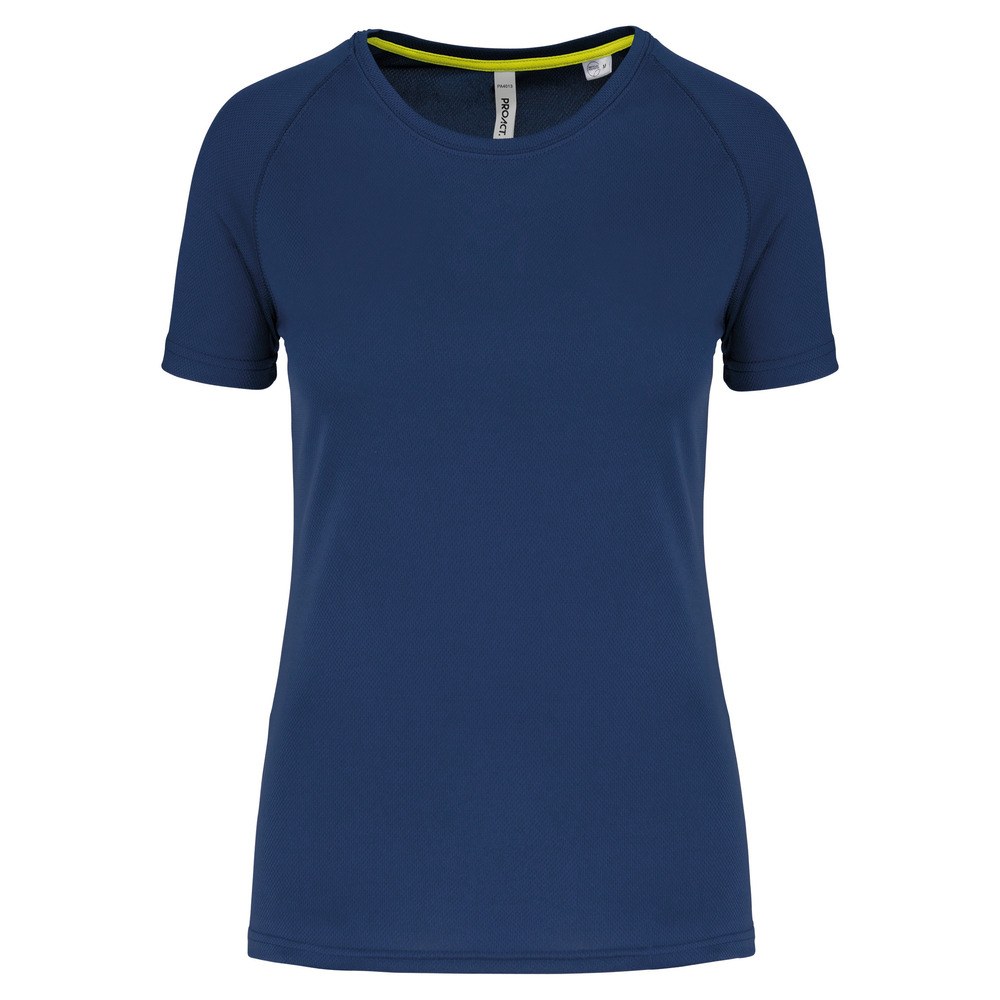 Collo rotondo con nastrino di rinforzo a contrasto.