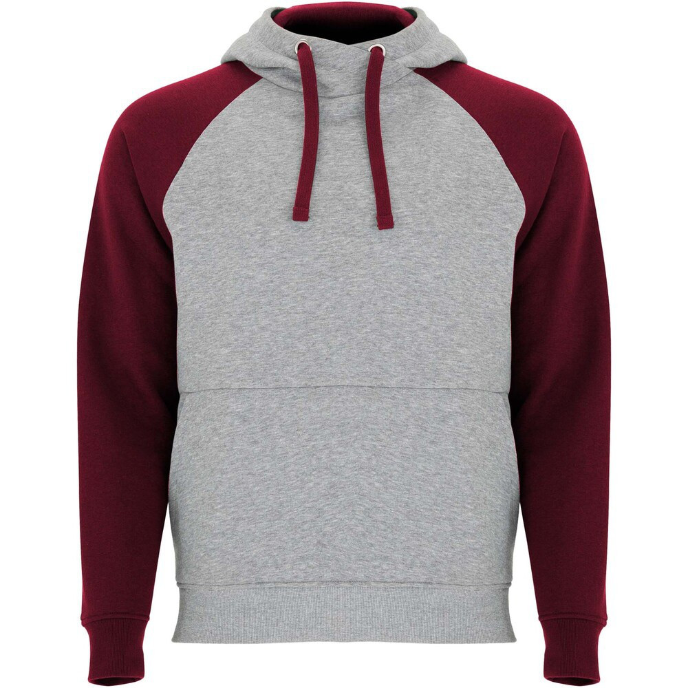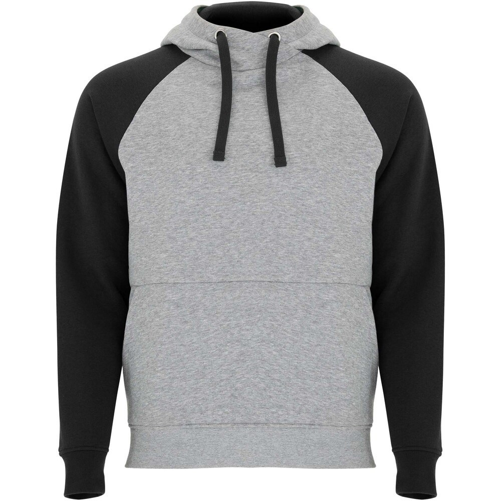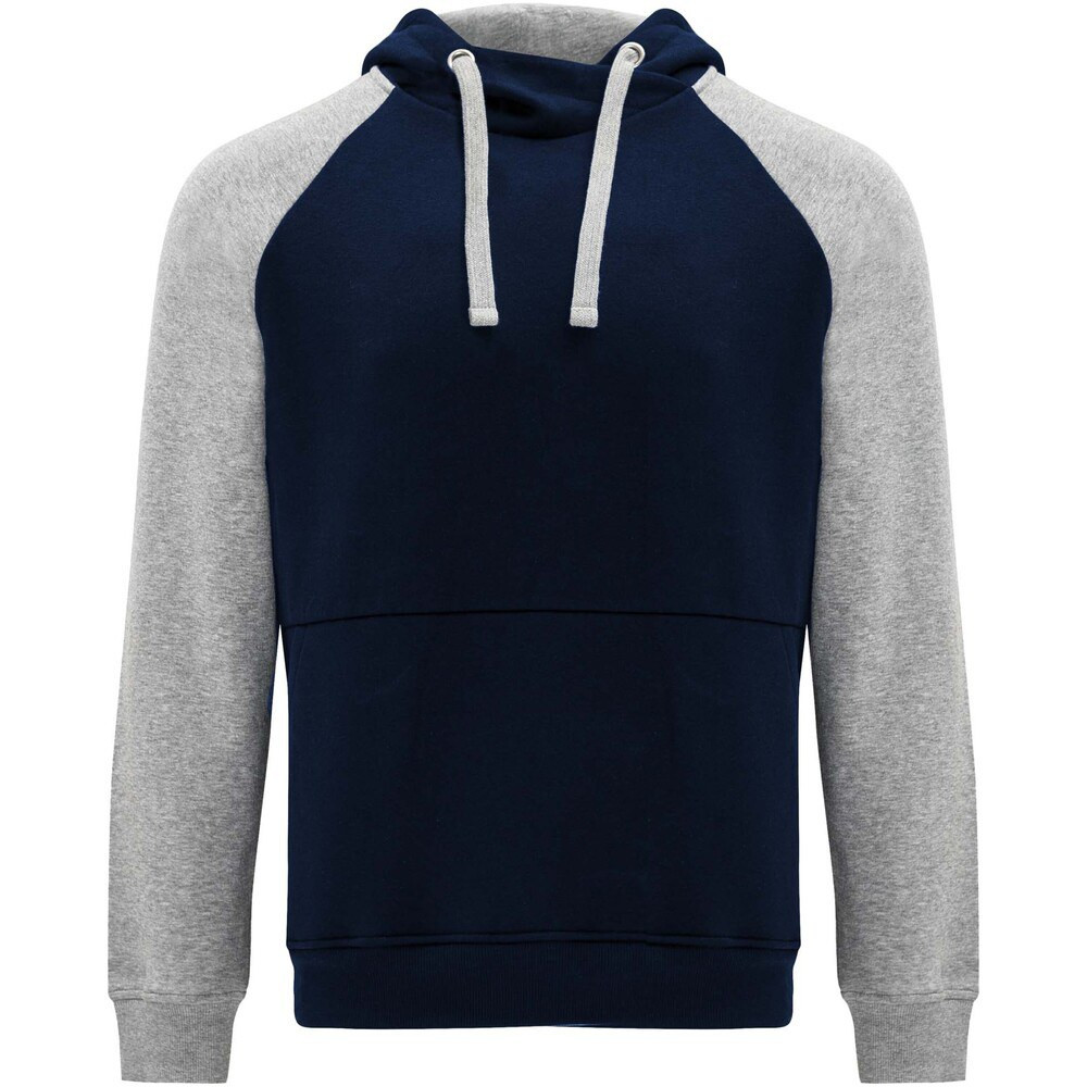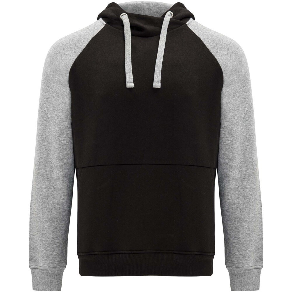 Felpa con cappuccio unisex bicolore. Cappuccio con collo incrociato e occhielli in metallo. Cappuccio interno a contrasto, cordoncino e maniche raglan. Tasca a canguro. Polsini e orlo in maglia a coste 1x1 in elastan. Etichetta rimovibile.