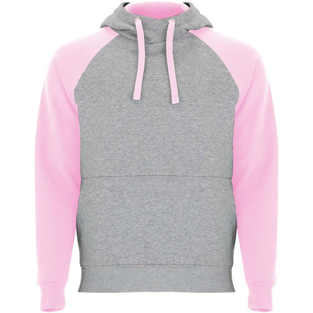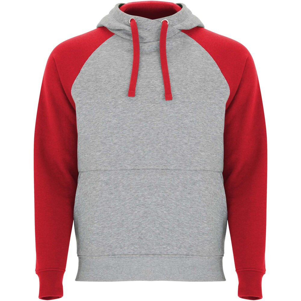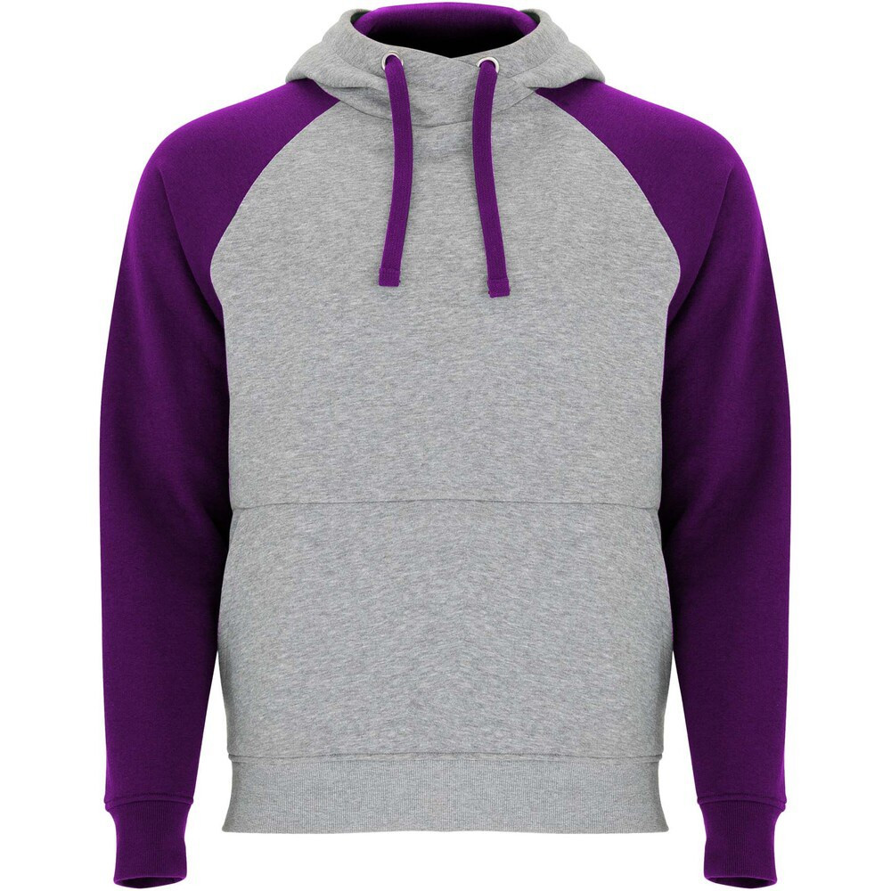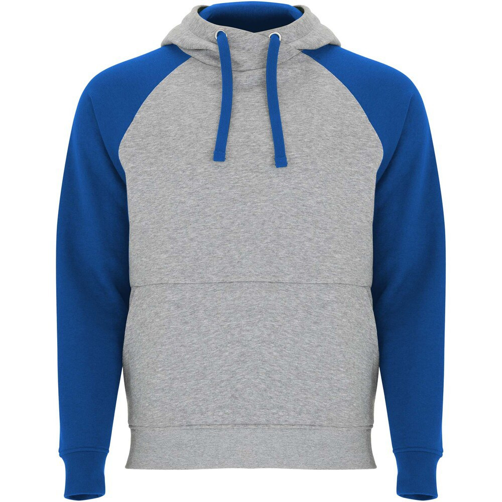 Felpa con cappuccio unisex bicolore. Cappuccio con collo incrociato e occhielli in metallo. Cappuccio interno a contrasto, cordoncino e maniche raglan. Tasca a canguro. Polsini e orlo in maglia a coste 1x1 in elastan. Etichetta rimovibile.