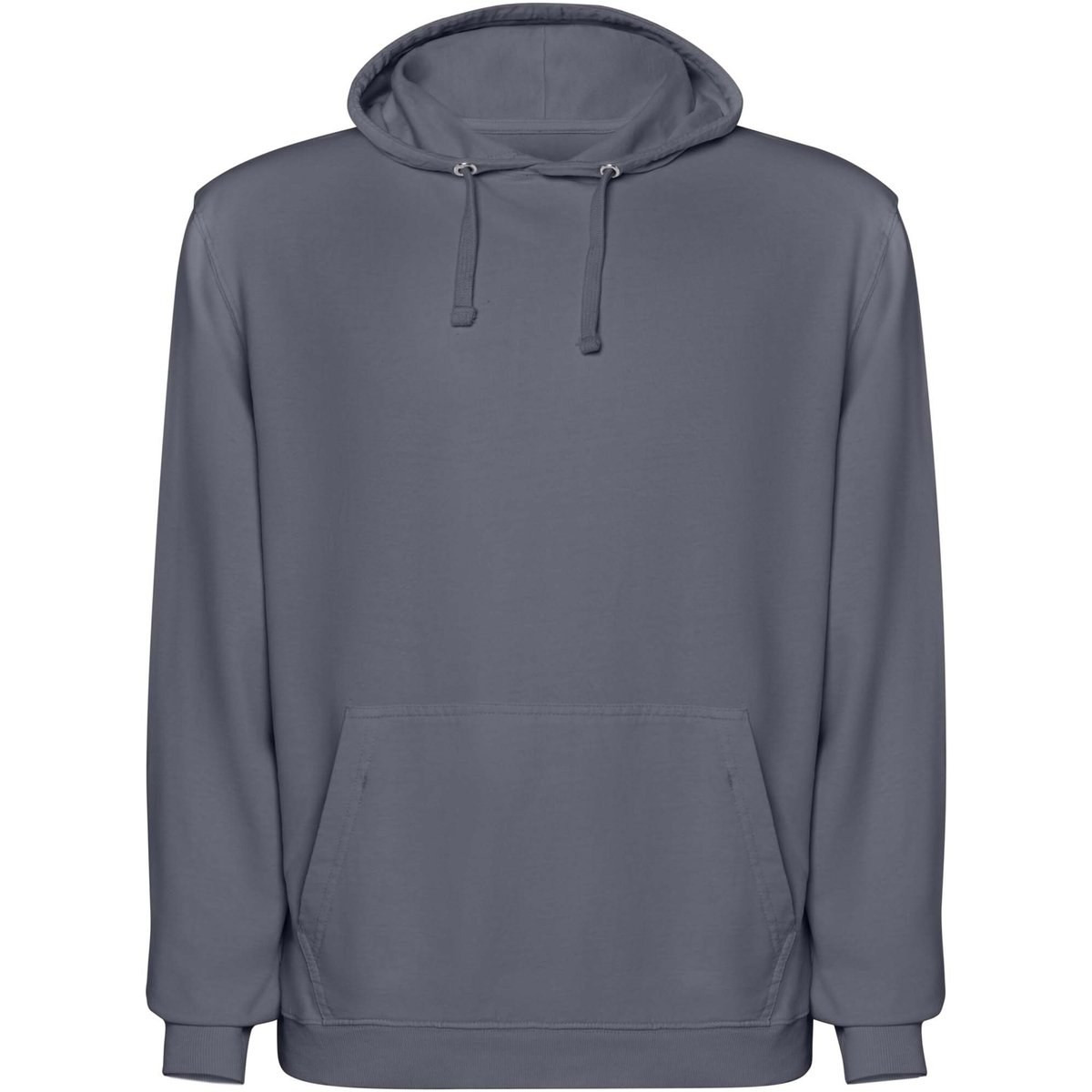 Felpa con cappuccio unisex con finitura con lavaggio acido. Polsini e vita a costine 2x1. Cappuccio foderato in jersey singolo tono su tono, con lacci piatti abbinati. Copertura tono su tono sulle cuciture sul collo. Tasca a canguro.