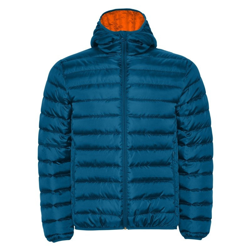 Giacca da uomo trapuntata morbida al tatto e cappuccio regolabile. Cerniere invertite con protezione per il mento abbinata. Due tasche anteriori con cerniera. Orlo elasticizzato abbinato sui polsini, sull’orlo e sul cappuccio. Fodera interna a contrasto. Inclusa borsa per riporta e trasportarla. Indumento leggero e ripiegabile. Idrorepellente. Modello anti-vento.