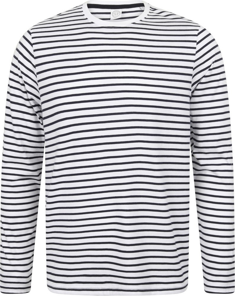 Questa t-shirt a righe SFM204 del brand Skinnifit è un modello senza tempo, un capo elegante, caratterizzato da motivi a righe marine in sottilissime linee orizzontali.