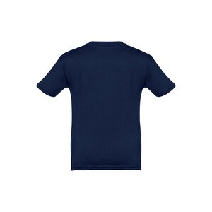 T-shirt da bambino (unisex) in jersey 100% cotone (150 g/m²) con filo di cotone cardato. Girocollo a costine 1x1 e nastro di rinforzo in jersey. Cucitura doppia sulle maniche e parte inferiore