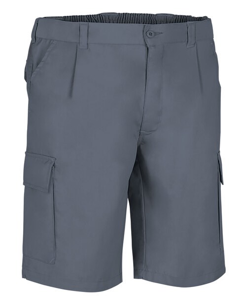 Pantalone corto da lavoro multitasche. Realizzato in tessuto twill misto cotone con poliestere robusto e duraturo. Vita con la metà posteriore elastica e clip sul davanti per una migliore vestibilità e comoditá. Due tasche oblique sui fianchi, due tasche laterali con chiusura in velcro e una tasca posteriore destra per avere tutto accessibile e disponibile. Cuciture principali doppie e punti di maggiore trazione, rinforzati con clip di sicurezza che forniscono durabilitá e resistenza. Metodi di personalizzazione idonei: serigrafia, trasferimento, vinile, ricamo. Ideale come abbigliamento da lavoro e divisa estiva.