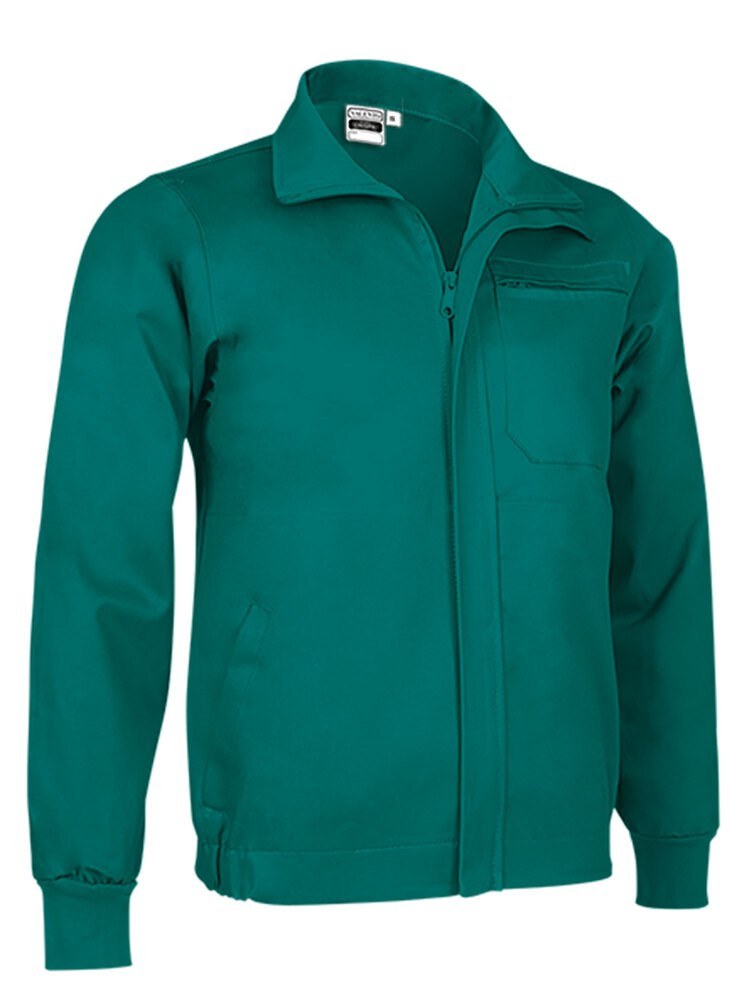 Giacca da lavoro con design a tinta unita. Realizzata in tessuto twill 100% cotone per garantire durata, resistenza e traspirabilità. Due tasche oblique in vita e una tasca rinforzata sul petto a sinistra, tutte con chiusura a zip, per avere tutto a portata di mano ed evidenziare il brand. Polsini con elastico per adattarsi comodamente. Vita con fascia elastica sui fianchi per una migliore vestibilità e comfort. Metodi di personalizzazione idonei: serigrafia, ricamo, trasferimento, vinile. Ideale per abbigliamento da lavoro e divisa da lavoro, si abbina ai pantaloni CHISPA.