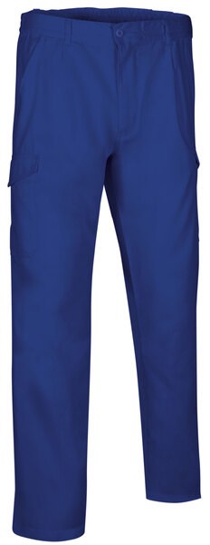 Pantaloni da lavoro multitasche. Realizzati in tessuto twill misto cotone/poliestere per garantire durata e resistenza. Chiusura con bottone e zip nascosta sotto la patta, vita con passanti per cintura e fascia elastica posteriore per una migliore vestibilità e comfort. Due tasche oblique sui fianchi, una tasca posteriore destra applicata e due tasche laterali con pattina a punta e chiusura in velcro, per avere sempre tutto a portata di mano. Cuciture principali a doppia impuntura e punti di trazione rinforzati per una maggiore durata e resistenza. Metodi di personalizzazione idonei: serigrafia, ricamo, trasferimento, vinile. Ideali come abbigliamento da lavoro e divisa da lavoro.