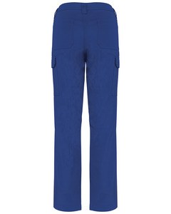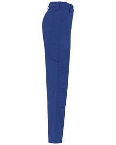 1 tasca con patta e chiusura in velcro sul lato sinistro, 1 tasca doppia porta-utensili a destra, 2 tasche posteriori applicate, 2 tasche per ginocchiere tono su tono con velcro e patta interna per mantenere in posizione ed adattare le ginocchiere.